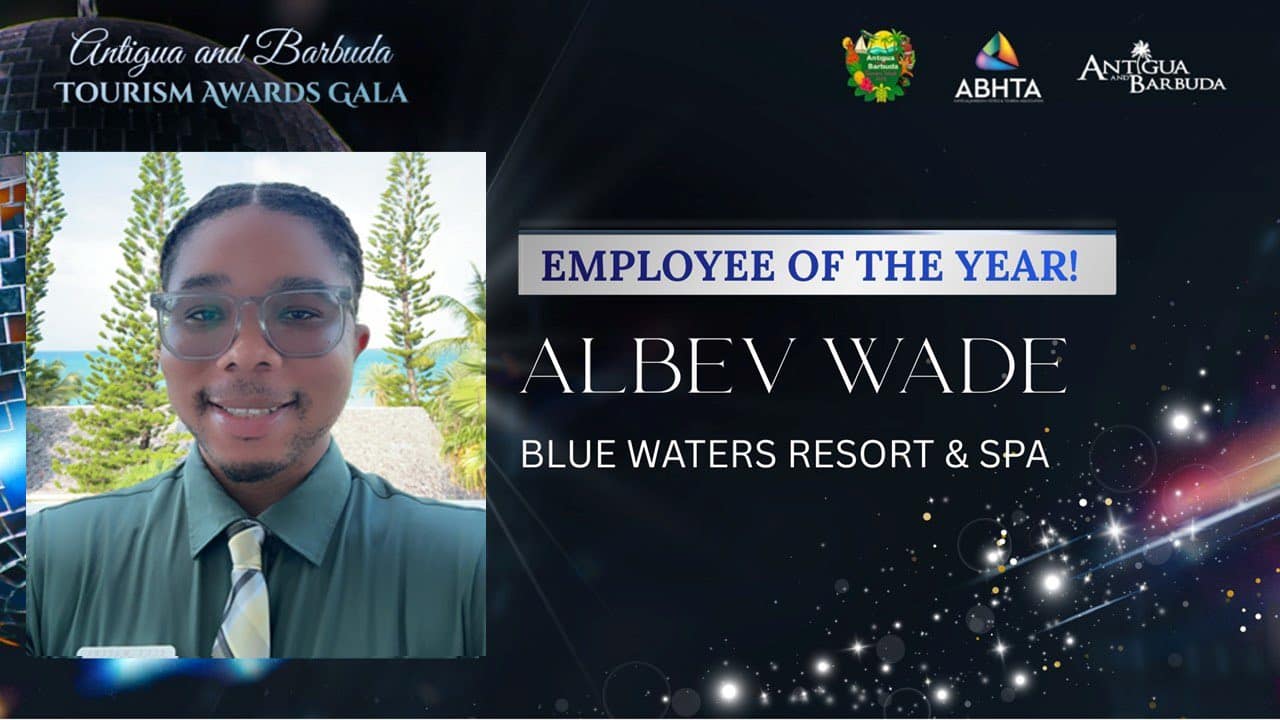 Blue Waters Resort & Spa employee Albev Wade has been awarded Employee of the Year at the 2025 Antigua and Barbuda Tourism Awards Gala.