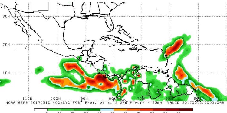 The weather will improvements tomorrow (Friday). Possible rainfall total for the forecast period is 10 to 40 mm (0.40 to 1.50 in).