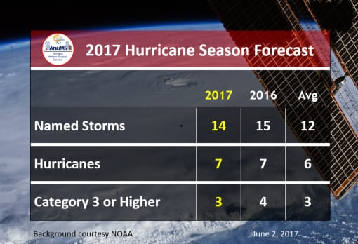 “The probability of Antigua being hit or brushed by one or more named storm this year is around 63 per cent – up 14 per cent from the average of 49 per cent.
