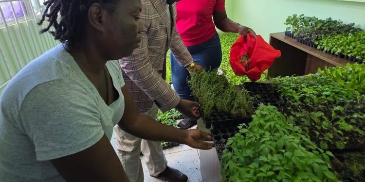 The seedling handout represents an early milestone in the Plant2Plate Competition, which aims to strengthen food security by empowering citizens to grow fresh produce at home across Antigua and Barbuda.