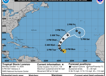 Read moreDetailsTropical Storm Lorenzo Remains Disorganized Over the Atlantic Tropical Storm Lorenzo remains poorly organized as it moves northwestward across the...