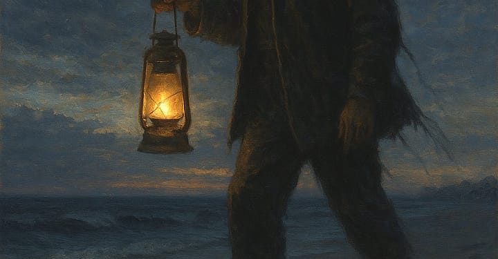 A small, steady glow. A single lantern, held by a man who walked with the calm of someone who had survived far worse. He walked as if the storm itself had stepped aside to let him pass.