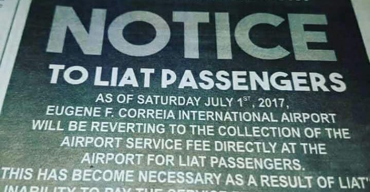 As such authorities have put the cash-strapped carrier’s customers on notice that effect July 1, 2017, the airport will be “reverting” to collecting the fee “directly at the airport for LIAT passengers.”