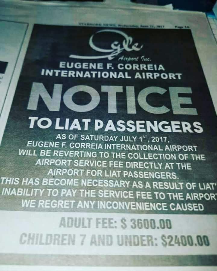 However, in a notice published in several Guyana newspapers, the airport says it has not been getting the money from LIAT. warns that the measure will take effect from July 1, 2017.