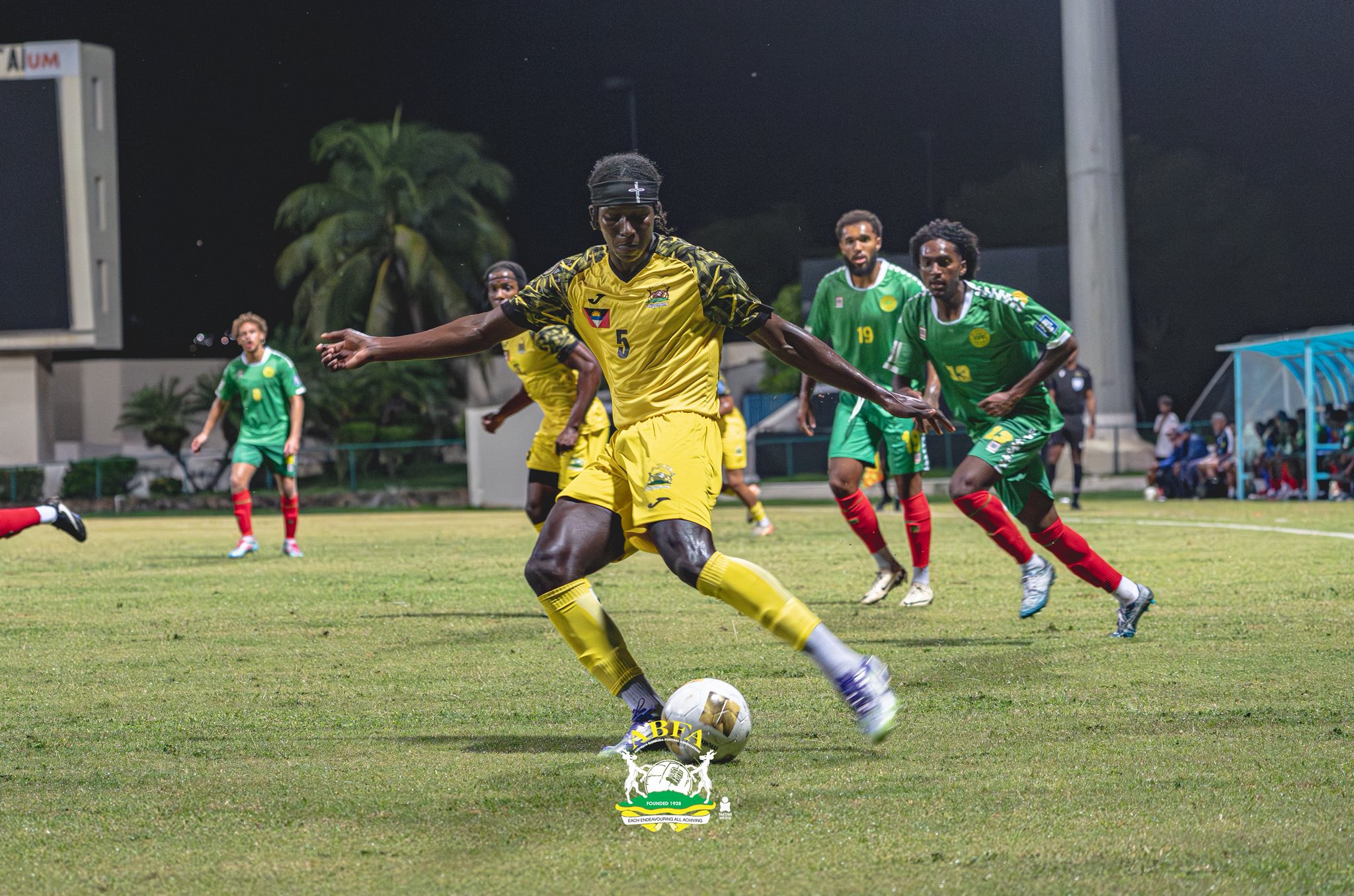 With three previous victories over the Benna Boys, Guyana wasted no time asserting their superiority. In the 10th minute, Osaze De Rosario’s brilliant footwork on the left flank set up Omari Glasgow, who powered home from close range to beat goalkeeper Shohoi Dorsett – 1-0.
