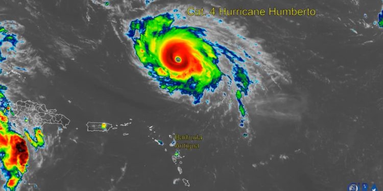 Dangerous Category 4 Hurricane Humberto is passing safely more than 350 miles north of Antigua and Barbuda, sparing the twin-island nation from a direct hit. The powerful storm is packing sustained winds near 145 mph with higher gusts, but forecasters say its main local impact has been the disruption of wind patterns, sending the heat index climbing above 40°C (104°F).