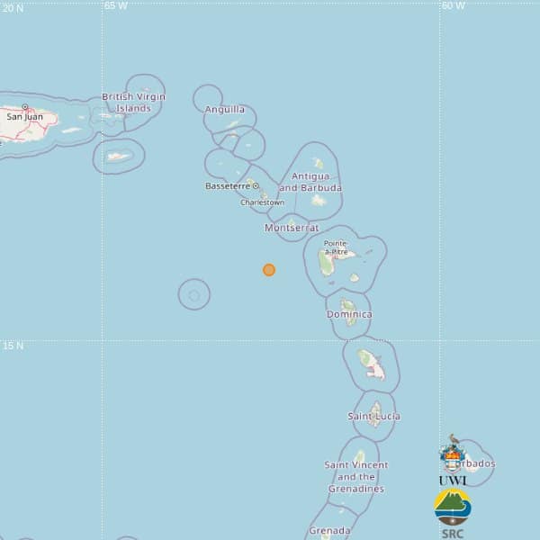 UWI-SRC reported that the quake was situated about 88 km south-west of Brades, Montserrat; 110 km west-south-west of Point-à-Pitre, Guadeloupe; and 138 km south-west of St John’s, Antigua and Barbuda.