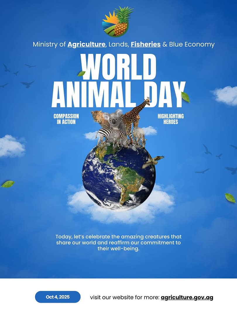 Here in Antigua and Barbuda, the Ministry of Agriculture, Lands, Fisheries and the Blue Economy proudly recognize the importance of this day. Through its various divisions, the Ministry continues to emphasize the value of animals—both domesticated and wild—in our national development and in the safeguarding of our environment.
