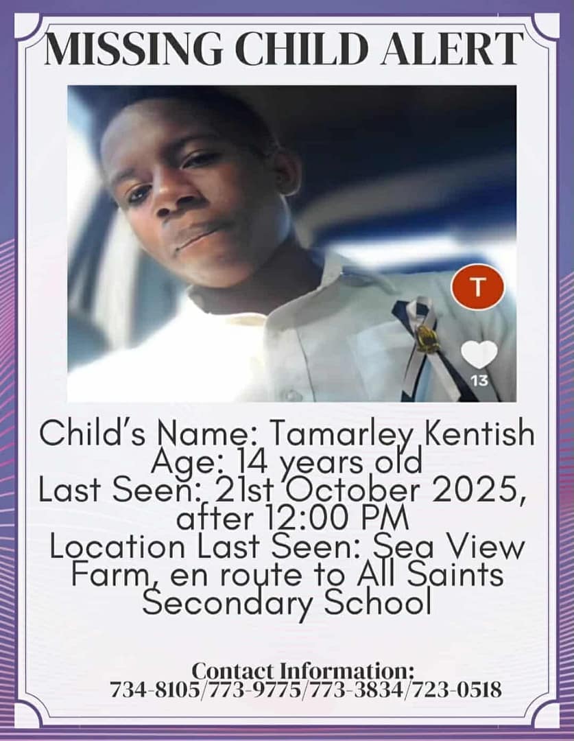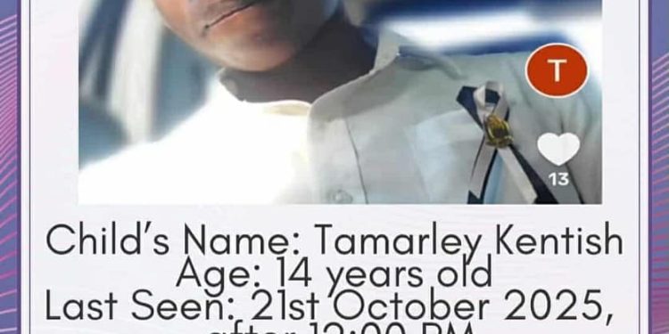 Kentish was last seen around 12 p.m. on October 21 in Sea View Farm, reportedly on his way to All Saints Secondary School. Family members say he has not been seen or heard from since.