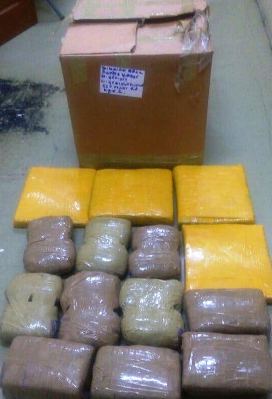 Over 90 pounds of Cannabis was seized at V.C. Bird International Airport Thursday night, by members of the Narcotics Department and Customs K-9 Unit. The officers were on duty at the airport conducting one of their routine checks, when the dog indicated on two cardboard boxes, coming out of Jamaica on Caribbean Airlines Flight #459.