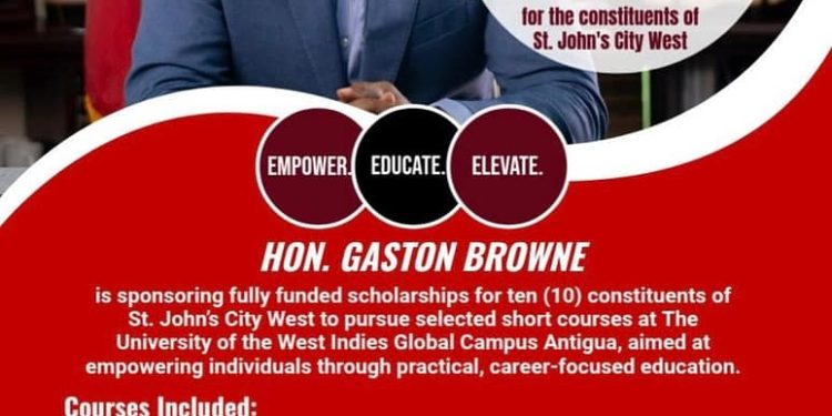 Prime Minister Gaston Browne is sponsoring 10 fully funded scholarships for residents of St. John’s City West to pursue selected short courses at the University of the West Indies Global Campus in 2026.