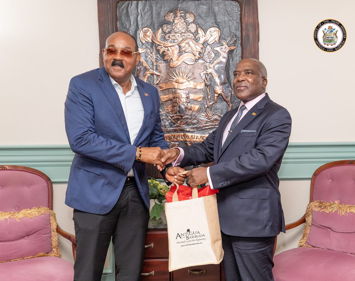 Prime Minister the Honourable Gaston Browne on Tuesday welcomed the new Ambassador of the Republic of Zimbabwe, His Excellency Cecil Chinenere, to the Office of the Prime Minister, during a courtesy call aimed at strengthening bilateral cooperation and advancing shared priorities between the Caribbean and Africa.