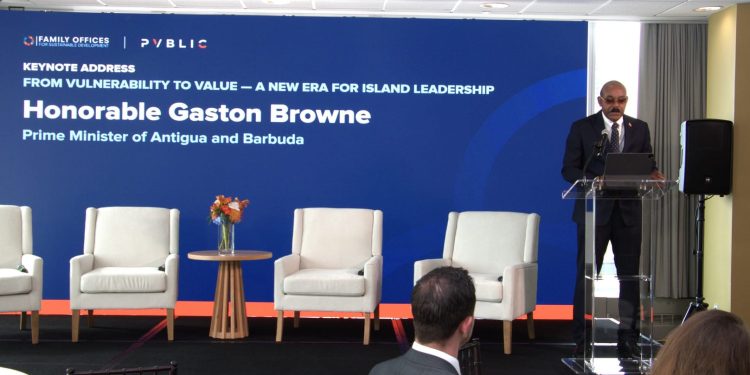 Prime Minister the Honourable Gaston Browne on Wednesday addressed the Family Offices for Sustainable Development (FOSD) Summit, urging global investors and development partners to move “from vulnerability to value” by aligning capital with the resilience and growth ambitions of Small Island Developing States (SIDS).