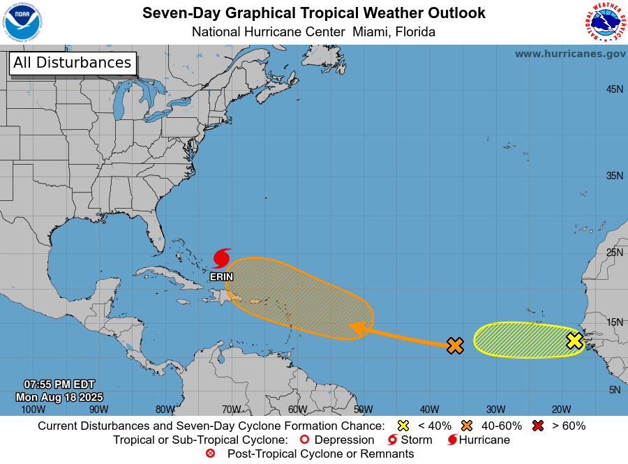 The National Hurricane Center (NHC) said on Monday evening that a tropical wave located in the central tropical Atlantic is producing disorganized showers and thunderstorms. Conditions are expected to gradually become more favourable, giving the system a 60% chance of forming into a cyclone within the next seven days.