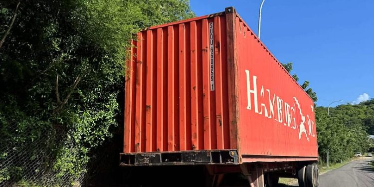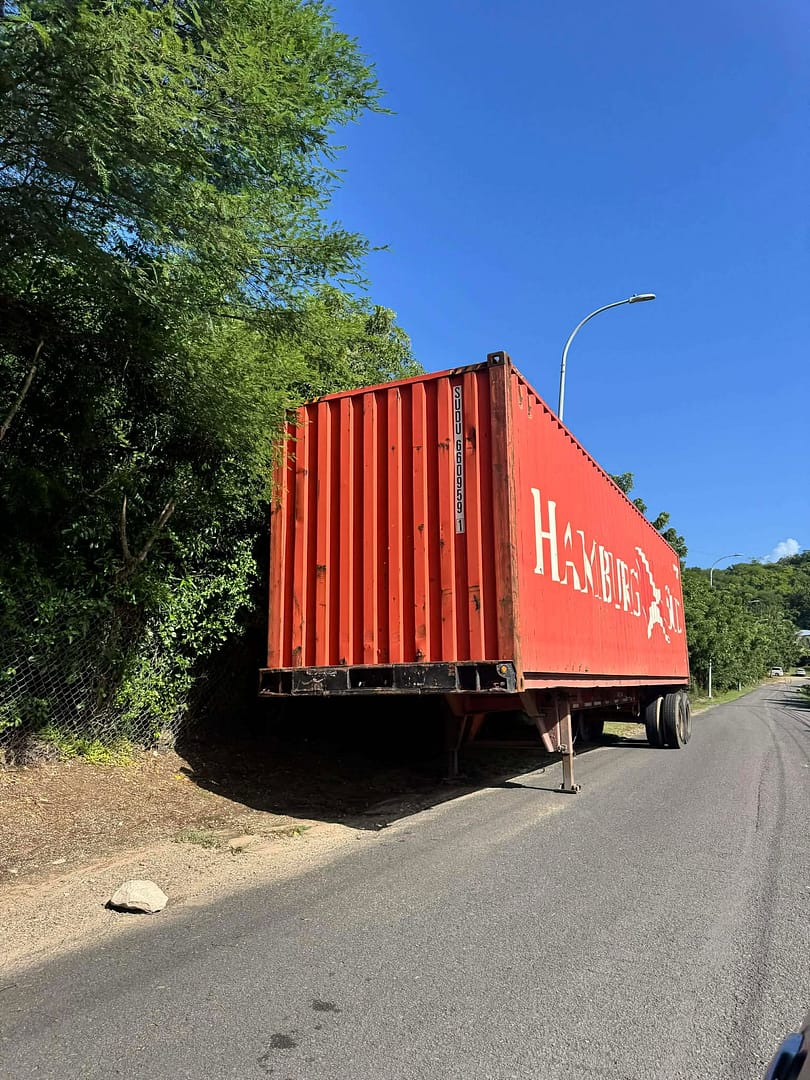 According to the citizen, the container has been parked for several days on Rotten Town Road, also known as Charlotte Gilbert Drive, without any reflectors, lighting, warning cones or safety indicators to alert approaching motorists—especially at night.