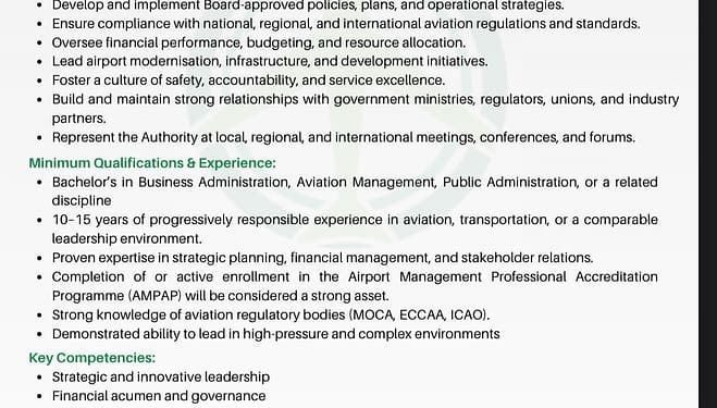 This is a unique opportunity to lead one of the Caribbean’s premier airport authorities during an exciting period of growth and transformation. The successful candidate will have the platform to make a lasting impact on national economic development and regional aviation excellence.