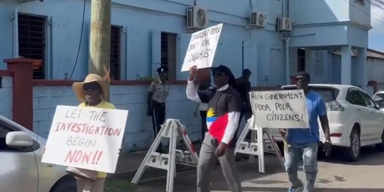 Supporters of the opposition United Progressive Party (UPP) gathered outside the Ministry of Works building on Thursday, demanding an independent forensic investigation into issues they say require greater government transparency.